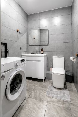 — Просторная ванная комната и санузел с новой сантехникой