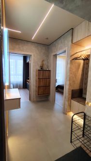 Дизайнерская квартира со всеми удобствами и со всеми бытовыми мелочами, от полного комплекта посуды до USB розетки с подзарядками, для комфортной жизни. Свежий дизайнерский ремонт 2025 с новой техникой и новой мебелью. Кондиционеры в каждой комнате. Большие телевизоры 55" (4K с BT) в каждой комнате. Просторное полноценное угловое рабочее/игровое место с большим подвесным монитором 27". Дизайнерский большой остеклённый балкон с подвесными качелями и с мебелью. Продуманная до мелочей вместительная мебель до потолка во всей квартире. Огромный (1.85м) обеденный стол с удобными премиальными креслами. Вместительный (2.1м высотой) холодильник. Огромная мойка с отдельным краном питьевой воды (обратный осмос). Раздельный санузел (в каждом санузле своя раковина). Большая раковина в ванной с огромным зеркалом (с подсветкой и с подогревом). Умное освещение всех зон квартиры (от цоколя до штор). Умное освещение всей мебели в квартире (от рабочих зон до подсветки внутренностей мебели при открывании). Быстро-раскладной диван-кровать. 2-х спальная кровать с высоким матрасом и мягким изголовьем. Большое зеркало в коридоре с круговой подсветкой для нанесения макияжа. Большая обувница. Пылесос беспроводной с авто-подзарядкой. Утюг. Отпариватель.