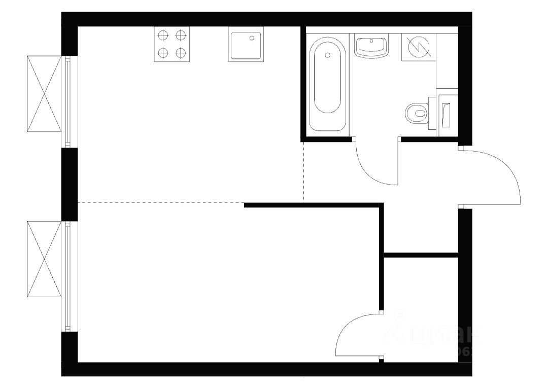 • Просторная и функциональная: Общая площадь 31.6 м². Это смежно-изолированная планировка, которую по вашему запросу можем дооснастить стеклянной алюминиевой перегородкой, чтобы полноценно отделить кухню от спальни.