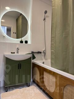 - В ванной стиральная машинка, тумба под раковиной, полотенцесушитель, экран и ванная с гидроизоляцией, что очень важно в новом доме.