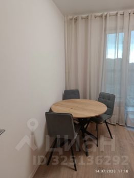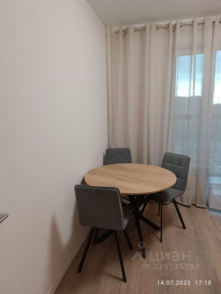Присутствует вся необходимая мебель как в комнате, так и на кухне. В комнате большой встроенный шкаф для хранения вещей. Раскладной диван 1,40 см, телевизора нет, но можем привезти небольшой. На кухне гарнитур с бытовой техникой (холодильник, варочная поверхность, духовой шкаф, вытяжка), обеденная группа. С кухни выход на большой 7-ми метровый балкон.