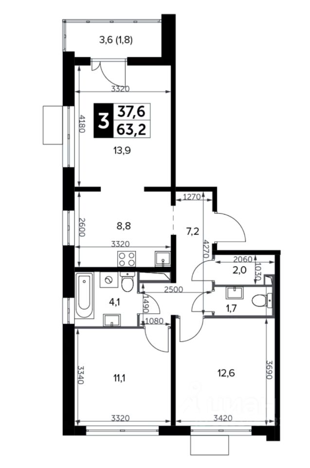 * В одной комнате двуспальная кровать, вторую комнату можем обставить под ваши задачи (спальня, детская, кабинет) или можете сделать все под себя.