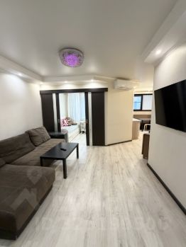 В квартире сделан современный евроремонт, который создает приятную атмосферу и комфорт. Есть вся необходимая техника: холодильник, телевизор и стиральная машина, в гостиной установлен кондиционер. Мебель установлена как на кухне, так и в комнате, поэтому вам не придется тратить время и дополнительные средства на обустройство. Ванная комната оборудована ванной, что позволит вам расслабиться после долгого дня.