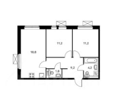 проживания. Большая кухня-гостиная 18.8 кв.м, 2 сан узла, 2 изолированные комнаты (евротрешка).