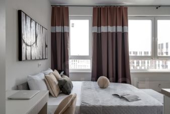 В квартире имеется большая двуспальная кровать, вся необходимая бытовая техника , посуда, белье, полотенца.