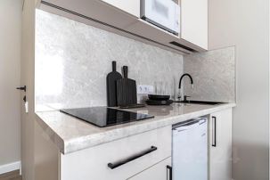 — Мини-кухня с индукционной плитой, СВЧ, холодильником, чайником