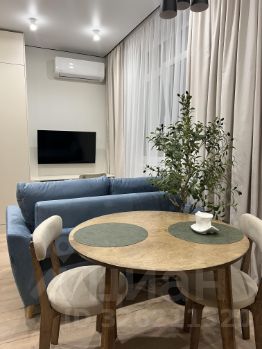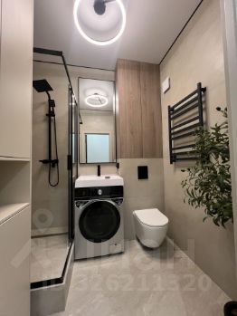 В квартире есть всё необходимое для комфортного проживания: современная мебель на кухне и в комнате, а также полный комплект техники, включая встроенные: холодильник, электроплиту, духовой шкаф, микроволновую печь, посудомоечную машину, а также кондиционер, стиральную машину и телевизор. Ванная комната оборудована душевой кабиной, что добавляет удобства.