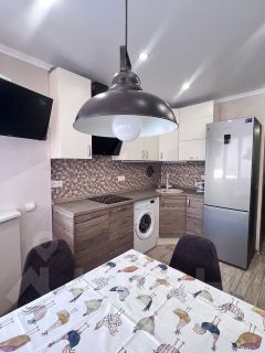 Квартира полностью укомплектована мебелью и техникой: посудомоечная машина, холодильник, микроволновая печь, электрический чайник, плита с духовым шкафом, стиральная машина, кондиционеры, два телевизора.