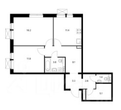 Планировка для комфортного проживания ОДНОЙ семьи: две изолированные комнаты 16.2 и 11.8 кв.м.. В гостиной ТВ, комод, диван раскладывается.