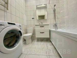 В ванной комнате - полноценная ванна 170*70, стильный зеркальный и навесной шкаф с доводчиками фирмы Roca, стиральная машина Candy Smartpro с загрузкой 7 кг и возможностью управления с помощью Wifi.