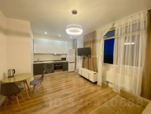 Сдается видовая студия на 14 этаже из 16 — просторная квартира в новом ЖК Римский от ФСК 30,2 м². с двумя окнами, кондиционером, диваном-кроватью и красивой кухней фабрики "Мария", в которой есть все для счастливой жизни.