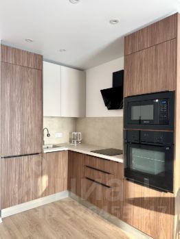 Кухня оборудована функциональной встроенной техникой: встраиваемый холодильник, варочная панель, духовой шкаф, микроволновая печь, посудомоечная машина, вытяжка.