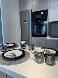 В комнате-кухне/гостинной: холодильник, духовой шкаф, варочнная панель, встроенная посудомоечная машина, микроволновая печь, мойка с измельчителем мусора.