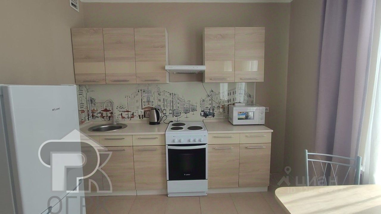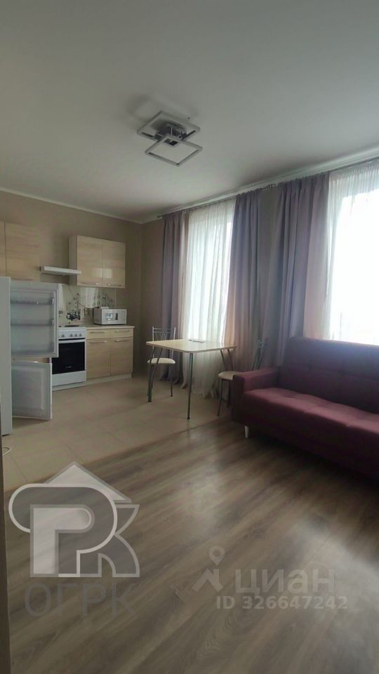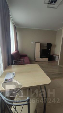 Студия полностью оборудована: мебель, встроенная кухня с техникой, отдельная гардеробная, сантехника, стиральная машина, гладильная доска. В квартире есть все необходимое. На площади зоны отдыха (18 м²) диван-кровать, телевизор и можно разместить рабочее место. На кухне (4 м²) есть холодильник, плита, микроволновая печь, чайник.