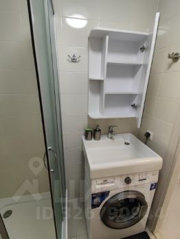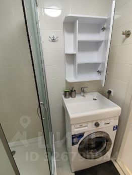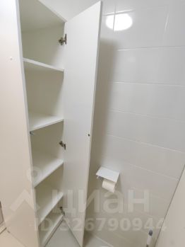Коридор светлый, белый с большим зеркальным шкафом-купе и множеством свободного места( что очень важно для студии)прихожая и тумба - для повседневной одежды и обуви. Даже в небольшой санузел добавлен большой шкаф с множеством полок стиральная машина с раковиной над ней и подвесное зеркало со шкафчиком.