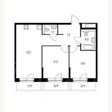Новая, современная евротрешка, две спальни и кухня-гостиная