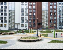 Дом современный ,с 2 грузовыми и двумя пассажирскими лифтами.Чистый красивый подъезд,изолированный двор .Есть закрытая наземная парковка с шлагбаумом .