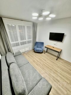 В квартире сделан косметический ремонт, она полностью готова к комфортному проживанию. На кухне и в комнате есть вся необходимая мебель. К вашим услугам холодильник, телевизор и стиральная машина. Санузел совмещённый и оборудован ванной. Также в квартире есть балкон, где можно наслаждаться свежим воздухом.
