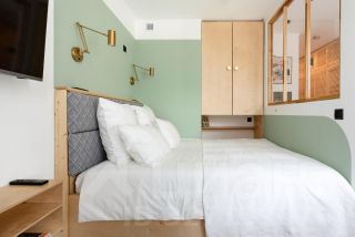 Умное зонирование - полноценное спальное место в уютной нише отделено от гостиной, что создает ощущение полноценной двухкомнатной квартиры (кровать 160х200).
