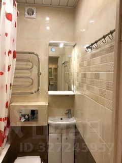 Санузел совмещенный, ванна, зеркало с полками внутри, сушилка под потолком, инсталляция.