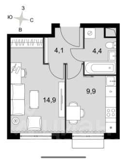 14,9 м²
