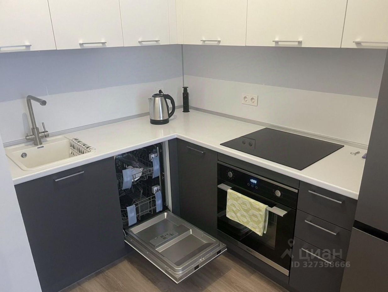 В квартире выполнен ремонт от строителей. Из мебели имеется необходимая кухня и двуспальная кровать, прихожая, диван. В наличии стол стулья, холодильник, плита, микроволновка и посудомойка, стиральная машинка.