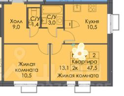Высота потолков 2,7 метра создаёт ощущение простора и свободы. Общая площадь квартиры составляет 47,3 кв. м, жилая — 23,6 кв. м, площадь кухни — 10,5 кв. м. Две комнаты изолированы, их площади — 10,5 и 13,1 кв. м соответственно. В квартире сделан ремонт, поэтому можно сразу заселиться .