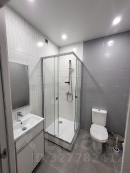Санузел совмещенный, выполнен в светлых тонах, имеется душевая кабина.