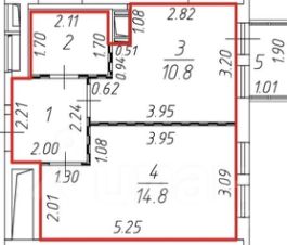 Общая площадь: 33.8 кв. м.