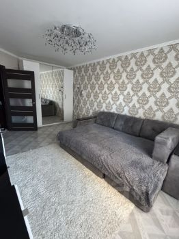 Квартира в отличном жилом состоянии. Чистая , уютная, Совмещенный санузел, застекленная лоджия, Есть все необходимое для комфортного проживания : мебель (диван -кровать)и техника. Окна выходят в тихий двор. Подъезд чистый, консьержка , видеонаблюдение . Показы по договорённости