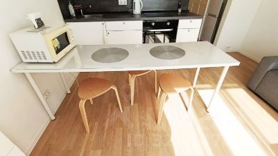 Сдается уютная студия в Дрожжино в ЖК Бутово Парк-2. Первая сдача. До этого квартира не сдавалась. Дом повышенной комфортности от ПИК. От метро Бульвар Дмитрия Донского 20 мин. Транспортом. От МЦД ст. Бутово 14 минут транспортом или на электросамокате, либо 35 минут пешком. Студия оборудована всем необходимым для комфортного проживания и размещения не более 1-го человека. В жилой зоне обустроено удобное спальное место в виде большого полноценного раскладного углового дивана с торшером для вечернего уюта. В жилой зоне на вместительном комоде установлен SMART TV HARTENS. Комфортный климат в помещении поддерживает новый современный кондиционер ROYAL CLIMA. В прихожей вешалка для верхней одежды и установлен вместительный трехстворчатый платяной шкаф. Компактная кухонная зона оборудована единой столешницей с удобной подсветкой рабочей зоны и необходимыми бытовыми приборами для приготовления различных блюд. Встроенная варочная панель со стеклокерамикой от WEISSGAUFF, духовой шкаф COMFEE, современная кухонная вытяжка, удобная мойка из нержавейки, микроволновка SUPRA, электрический чайник, большой кухонный стол и большой двухкамерный современный холодильник ВЕКО. В санузле установлена новая встроенная душевая кабина с раздвижными дверьми из закаленного стекла, раковина для умывания с тумбой для хранения предметов гигиены, удобная полка с зеркалом, электрический полотенцесушитель. Установлена и подключена стиральная машина INDESIT со спецпрограммами для стирки спортивной обуви и одежды. Окна выходят во двор с прекрасно оборудованной ландшафтной площадкой для прогулок и занятий спортом. Развитая инфраструктура всего микрорайона с современными условиями для проживания, досуга и отдыха. Всё в шаговой доступности. Детские сады, школы, магазины, кафе, торговый центр, фитнес-центр СССР с бассейном. Парковка прямо у подъезда. Рассмотрим предложения только от аккуратного арендатора, без вредных привычек и животных, ценящего современный комфорт и уют, следящего за чистотой арендуемого помещения. Только на длительный срок. Квартплата по счетчиками не включена в стоимость аренды и оплачивается отдельно. Арендатор не оплачивает услуги агентов. Самих агентов, с предложениями своих услуг - просьба не беспокоить.