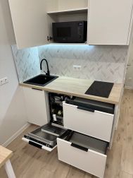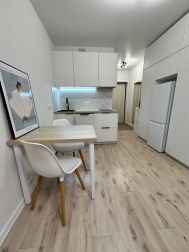 От собственника сдается новая стильная студия с дизайнерским ремонтом в монолитно-кирпичном доме 2025 года постройки. Интерьер организован в формате уютного гостиничного номера, со всем необходимым для одного взрослого жильца. Просторная комната оборудована удобной ортопедической кроватью с подъемным механизмом и вместительными шкафами. В кухне современная мебель и встроенные бытовые приборы, включая холодильник и посудомоечную машину. Для вашего удобства предусмотрены два пассажирских и два грузовых лифта. Парковка за шлагбаумом во дворе (пропуск включен) обеспечивает безопасность автомобиля. Самый удобный дом в районе по близости к остановке транспорта и комфорту выезда на авто. Курение и проживание с детьми или животными не допускаются. На длительный срок, договор 11 мес., регистрация. Залог и полная оплата квитанции ЖКУ.