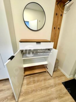 прихожая: большой шкаф с местом под вешалки, множеством полок под вещи и обувной полкой, зеркало, отдельная вешалка под верхнюю одежду, пуфик, гостевая обувница;