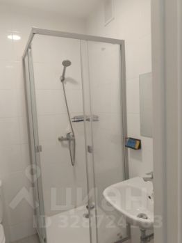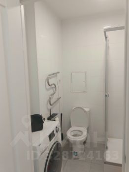 В студии необходимая мебель и техника: холодильник и стиральная машина, поэтому можно сразу заехать и начать комфортное проживание. Санузел совмещён и оборудован душевой кабиной.