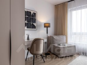 В студии выполнено грамотное зонирование, благодаря которому приватная спальная зона отделена от кухни и столовой, есть удобное рабочее место, комфортная двуспальная кровать и дополнительное спальное место в виде раскладного кресла.