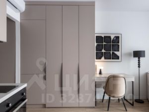 Квартира полностью укомплектована всем необходимым. Корпусная мебель под под потолок и выполнена на заказ, предусмотрено много мест для хранения: есть два вместительных шкафа.