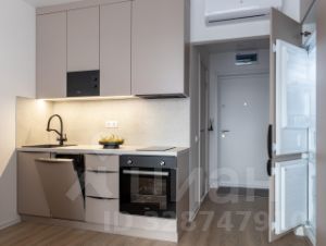 Вся техника встроенная, включая посудомоечную машину, холодильник, духовой шкаф, свч, плиту и вытяжку, также есть стиральная машина и кондиционер.