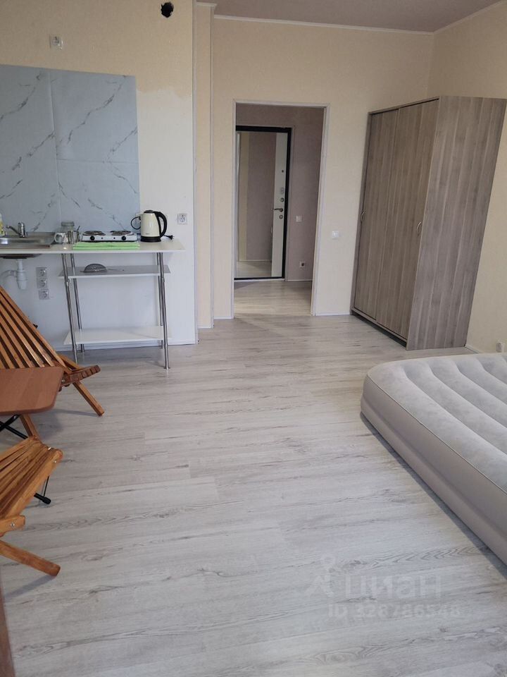 В квартире выполнен косметический ремонт, который создаёт атмосферу уюта и комфорта. Пространство студии рационально организовано: есть всё необходимое для комфортного проживания — мебель на кухне и в комнате. Ванная комната оборудована ванной, где можно расслабиться после долгого дня. Из техники в вашем распоряжении холодильник, телевизор и стиральная машина.
