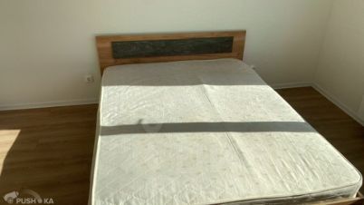 Есть встроенная кухня с техникой: варочная панель с вытяжкой, посудомоечная машина, холодильник, диван, двуспальная кровать, шкафы, комод, стиральная машина.