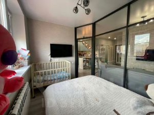Интерьер квартиры выполнен в современном стиле. Есть гардеробная. В комнате и на кухне есть вся необходимая мебель. Кухня оснащена современной техникой: холодильник, посудомоечная машина и телевизор. В ванной комнате установлена душевая кабина и стиральная машина, поэтому можно сразу заезжать и жить с комфортом. Лоджия добавляет дополнительное пространство для отдыха.