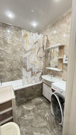 Сдаётся уютная однокомнатная квартира с евроремонтом на 8-м этаже в современном 18-этажном кирпичном доме, построенном в 2018 году. Общая площадь квартиры — 50 кв. м, площадь кухни — 10кв. м. Высокие потолки 2.8 метра создают ощущение простора. Окна выходят во двор, поэтому в квартире всегда тихо и спокойно. В квартире есть всё необходимое для комфортного проживания. Кухня оснащена современной мебелью и техникой, включая холодильник и кондиционер. В комнате также предусмотрена мебель для вашего удобства. Ванная комната оборудована ванной и стиральной машиной. Для развлечения и удобства установлен телевизор и проведён интернет. Дом имеет два пассажирских лифта и находится в отличном состоянии. Жильцы могут воспользоваться удобной парковкой. В шаговой доступности находятся школы, детские сады и магазины, что делает это место идеальным для семейного проживания. До метро можно добраться за 13 минут на автомобиле.