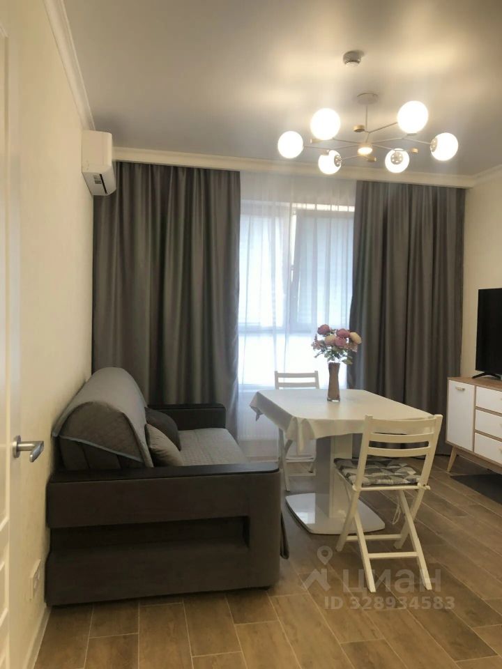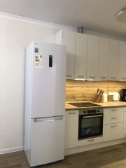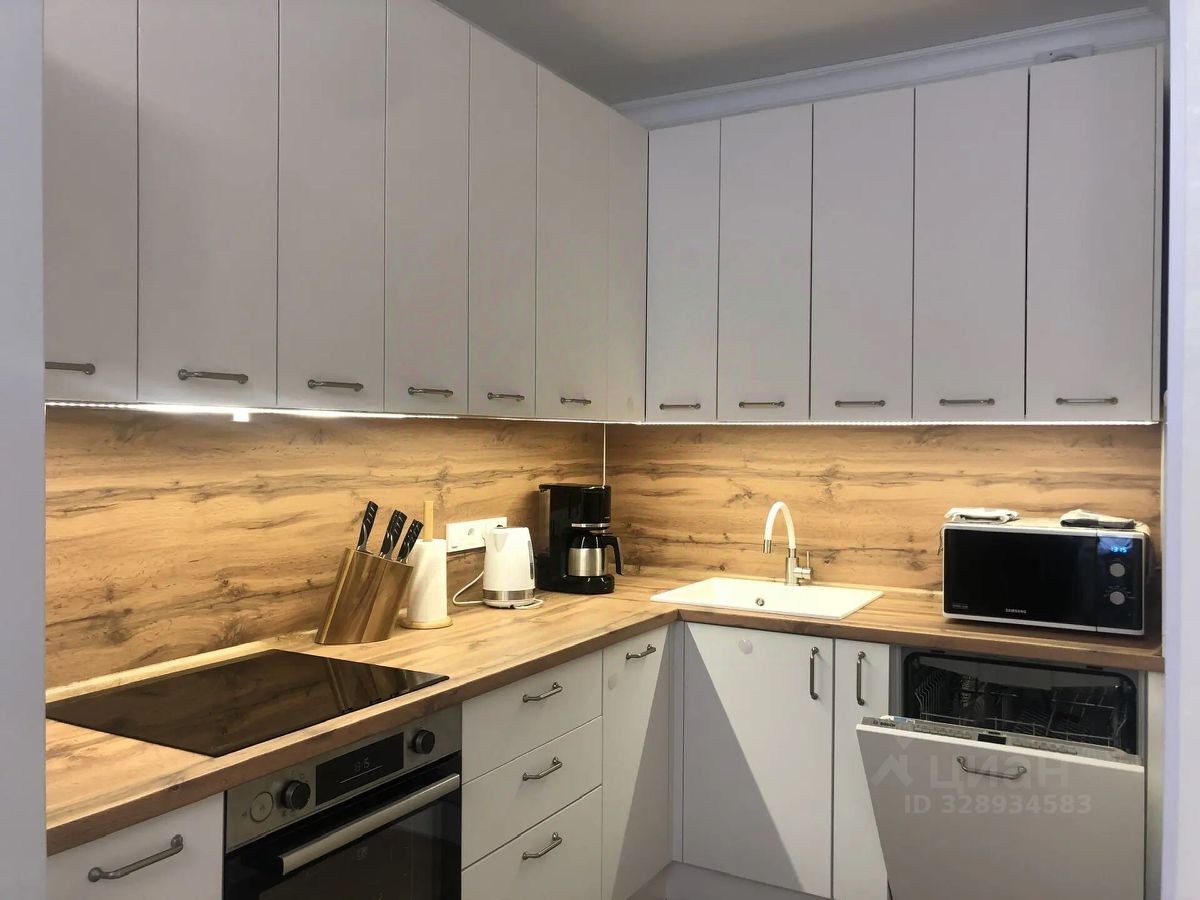 Большая кухня-гостиная. Диван-кровать раскладывается в полноценное спальное место 160/202 см с независимым пружинным блоком, как на современных матрасах, и ламелями. Дополнительно на диван-кровать предусмотрен ортопедический матрас-топпер (с чехлом) высотой 8 см для большего комфорта. Современный SMART-телевизор 55" 4K. Мощный инверторный кондиционер с антибактериальным фильтром, биполярным ионизатором, генерирующим плазму: насыщает воздух лёгкими ионами, надёжно и безвредно очищает воздух от бактерий и вирусов, а также оснащён улучшенной системой самоочистки. В кухне-гостиной стоит инверторный холодильник с низким уровнем шума и Wi-Fi-управлением. Полноразмерная посудомоечная машина шириной 60 см с функцией автоматического открывания дверцы, тремя корзинами, управлением по Wi-Fi через приложение на смартфоне, лучом на полу для индикации активности и вместимостью до 14 комплектов посуды. Духовой шкаф с функцией пиролитической очистки (загрязнения на стенках духовки сгорают, превращаясь в пепел, - достаточно протереть поверхность влажной салфеткой) и приготовления на пару. Полноразмерная мощная индукционная варочная поверхность с функцией расширения зоны нагрева. Капельная кофеварка с термокувшином из нержавеющей стали на 1 литр с автоподогревом и таймером. Вместительная микроволновая печь объёмом 23 литра. Чайник 1,7 литра. Имеется вся необходимая посуда и кухонные принадлежности.
