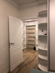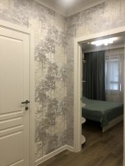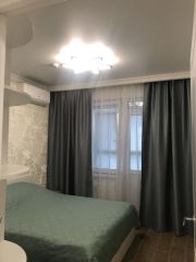 Планировка и ремонт: евро-2 формат. Отдельная спальня. Кровать со спальным местом 160200 см с ортопедическим матрасом (с чехлом) разной степени жёсткости. SMART-телевизор 43" с медиаплеером 4K. Мощный инверторный кондиционер с антибактериальным фильтром, биполярным ионизатором, генерирующим плазму: насыщает воздух лёгкими ионами, надёжно и безвредно очищает воздух от бактерий и вирусов, а также оснащён улучшенной системой самоочистки. Большой вместительный шкаф. Есть все необходимые постельные принадлежности, полотенца, утюг с функцией парогенератора, гладильная доска, передвижная сушильная система, компактный пылесос. Освещение регулируется через приложение на смартфоне.