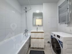 Ванная комната с полноценной ванной и стиральной машиной, санузел раздельный.