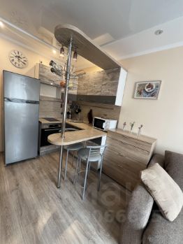 В квартире выполнен евроремонт, а значит, всё выглядит современно и стильно. Пространство грамотно организовано: жилая зона плавно переходит в кухню площадью 4 кв. м. Вся необходимая мебель размещена как в комнате, так и на кухне. Техника тоже в наличии: холодильник, свч, чайник, посудомоечная и стиральная машины, телевизор. Санузел совмещённый, есть ванна, поэтому можно расслабиться после насыщенного дня.