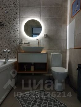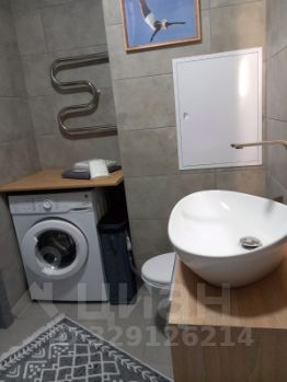 Атмосферная ванная комната по максимуму расслабит после тяжелого дня. Санузел оснащен просторной ванной, раковиной с тумбой, стиральной машиной, корзиной для белья.