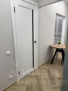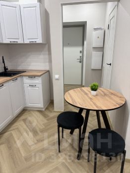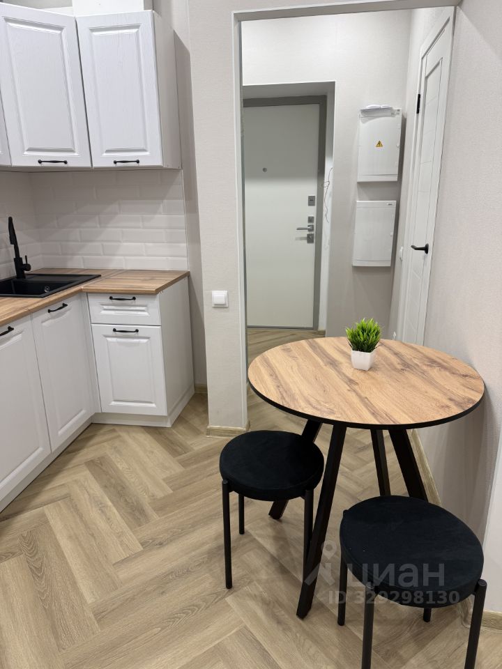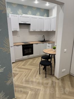 Кухня площадью 6 м² оборудована всем необходимым: современная плита, духовой шкаф, вытяжка, холодильник и стильный обеденный стол. Санузел совмещенный.