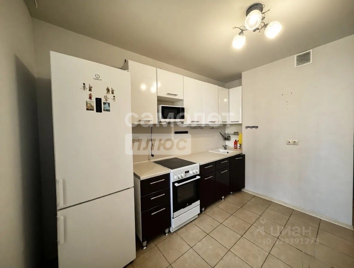 На кухне есть стол два стула, печь СВЧ, холодильник, встроенная кухня, эл чайник