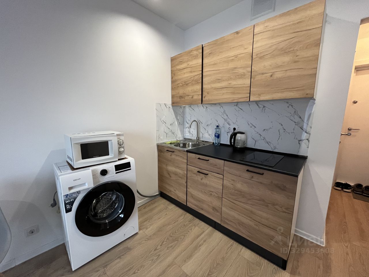 Впервые сдается стильная студия в новом доме 2025 года постройки. Кухня оборудована современной техникой, включая холодильник, стиральную машину, варочную панель, пылесос и микроволновую печь.