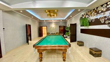 Стоимость указана за будний день до 15 человек. Свыше 15 человек доплата 1000р/чел. Выходные 150000 до 15 человек. Свыше 15 человек доплата 1000р/чел. В стоимость коттеджа включены бассейн (круглые сутки), сауна (4 часа в сутки), бильярд, мангал, посуда ( до 30 человек).